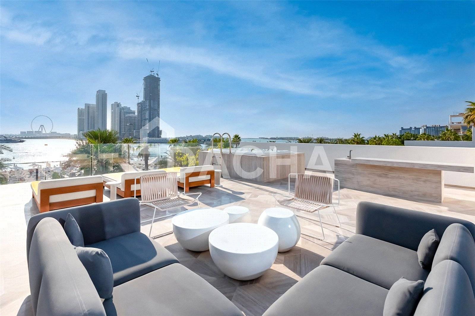 <ul> <li>Ultra-Luxury 5-Bed Beachfront Villa</li> <li>AVAILABLE NOW – Move In Immediately</li> <li>Panoramic Sea & Dubai Marina Views</li> <li>Private Heated Pool & Rooftop Jacuzzi</li> <li>Fully Furnished | All Utilities Included</li> <li>Three-Level Villa with Private Elevator</li> <li>Secure 3-Car Underground Parking</li> <li>Exclusive Access to 5-Star Hotel Facilities</li> <li>Expansive 12,000+ Sqft Living Space</li> </ul> Dacha Real Estate presents an exclusive opportunity to rent a breathtaking 5-bedroom beach villa at FIVE South Residences, Palm Jumeirah.<BR/><BR/>This exceptional villa offers five elegantly designed bedrooms, each with a luxurious ensuite, including a master suite with panoramic sea views overlooking Dubai Marina. Every room captures stunning vistas, while the rooftop Jacuzzi and private garden pool create the ultimate relaxation experience. Spread over three levels, the villa features an internal elevator, rooftop terrace with Jacuzzi, and a private garden with swimming pool.<BR/><BR/>Directly situated on West Beach, this fully furnished villa comes with all bills included, offering a seamless luxury lifestyle from day one.<BR/><BR/>Residents of FIVE Residences enjoy world-class amenities, including a spa, state-of-the-art fitness center, fine dining, water activities, and 24/7 concierge and room service, redefining the standard of luxury living on Palm Jumeirah.<BR/><BR/>Available for immediate transfer, this villa is a rare gem that combines privacy, elegance, and resort-style comfort.<BR/><BR/>Discover Dubai’s finest homes with Dacha.<BR/>Visit Dacha.ae or follow us on Instagram and Facebook for exclusive listings and luxury market updates.<BR/><BR/><BR/><BR/>