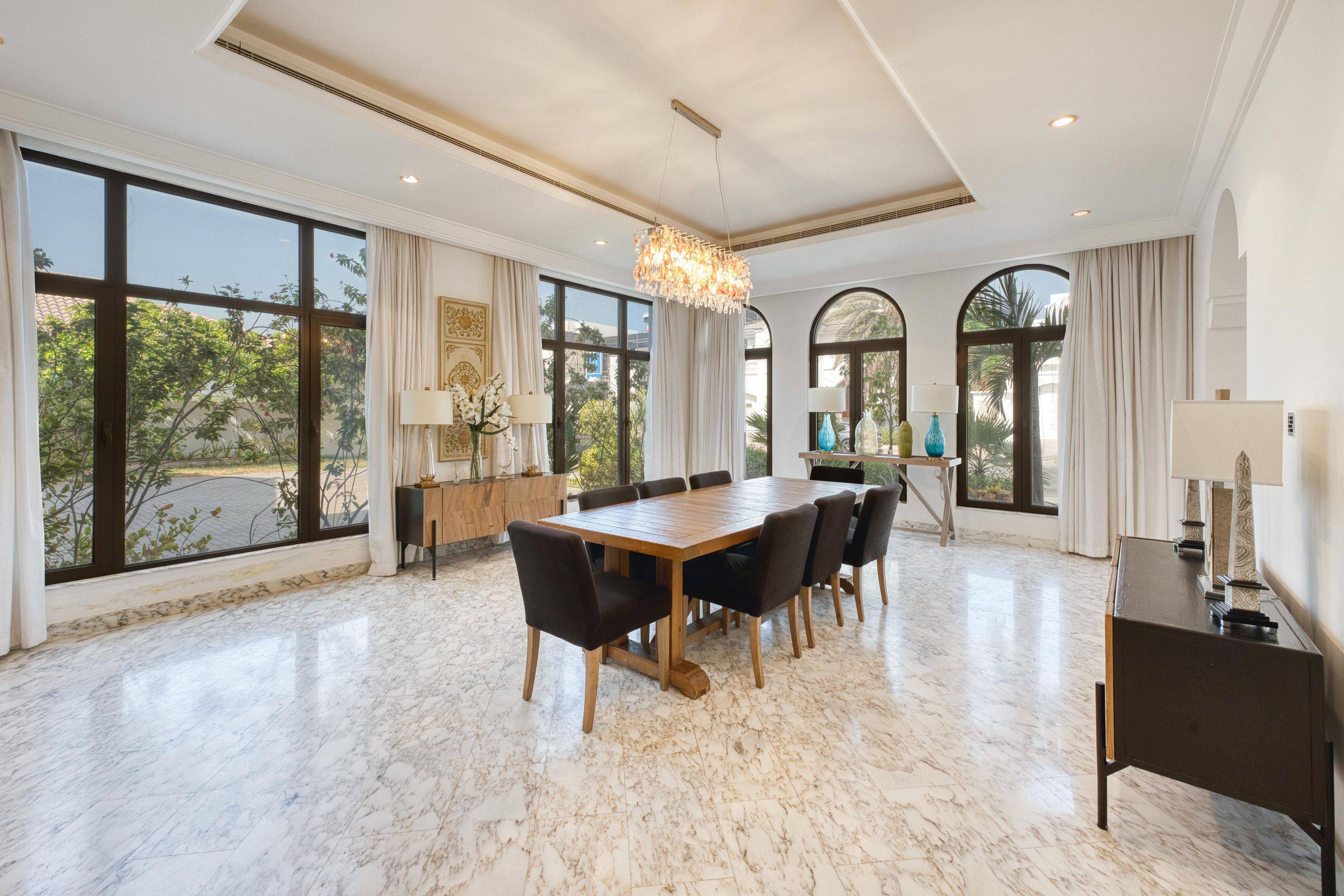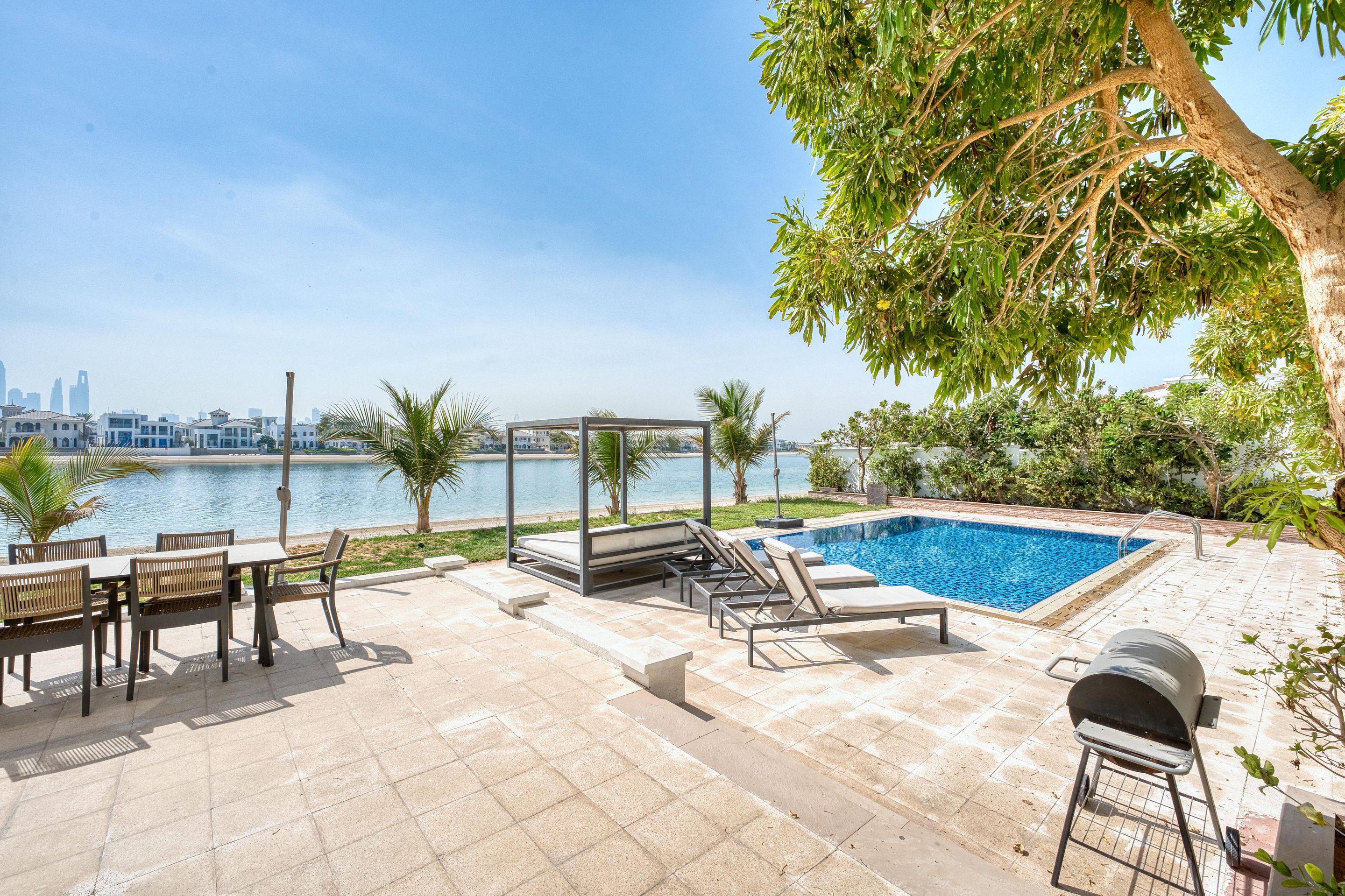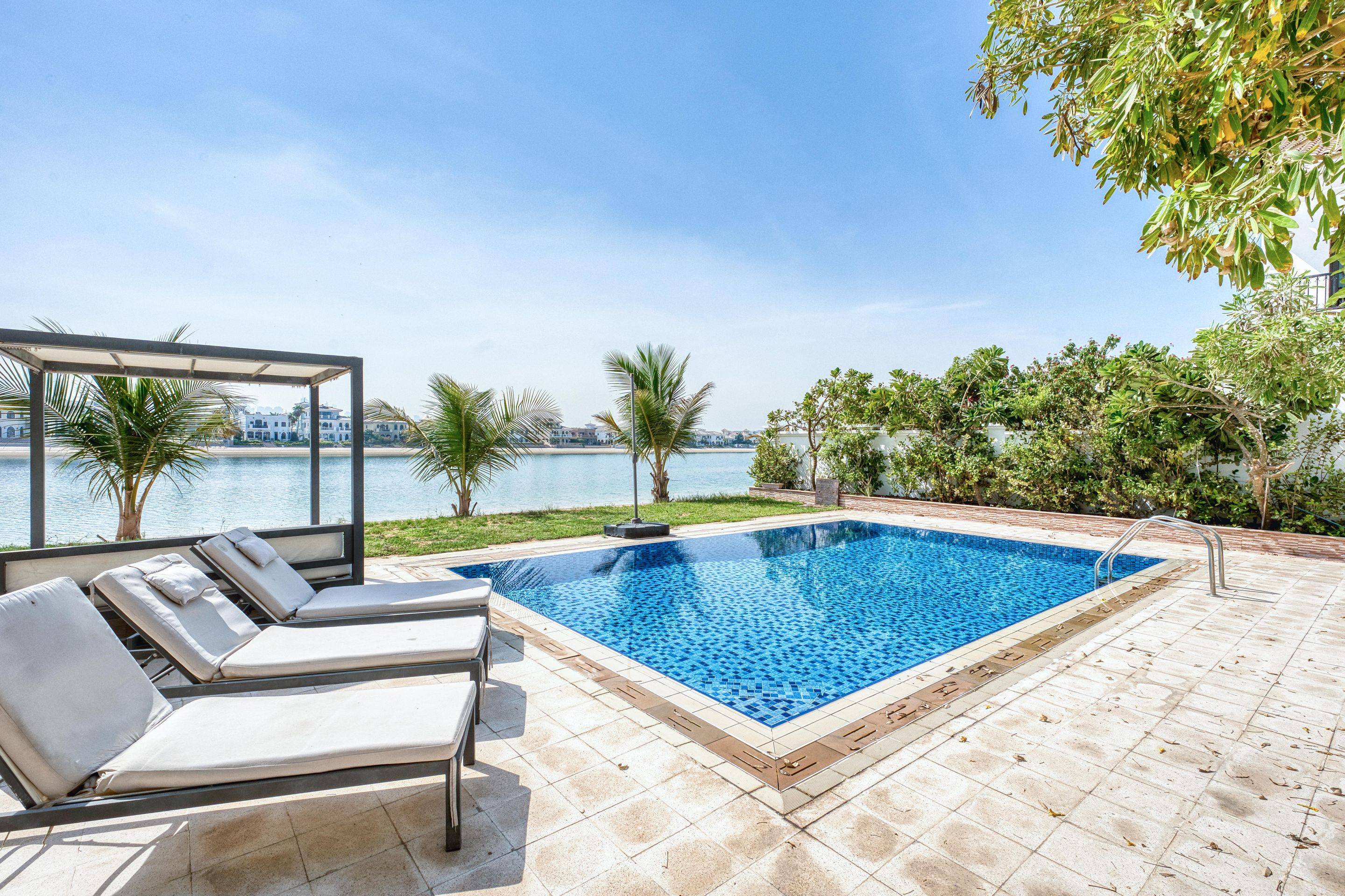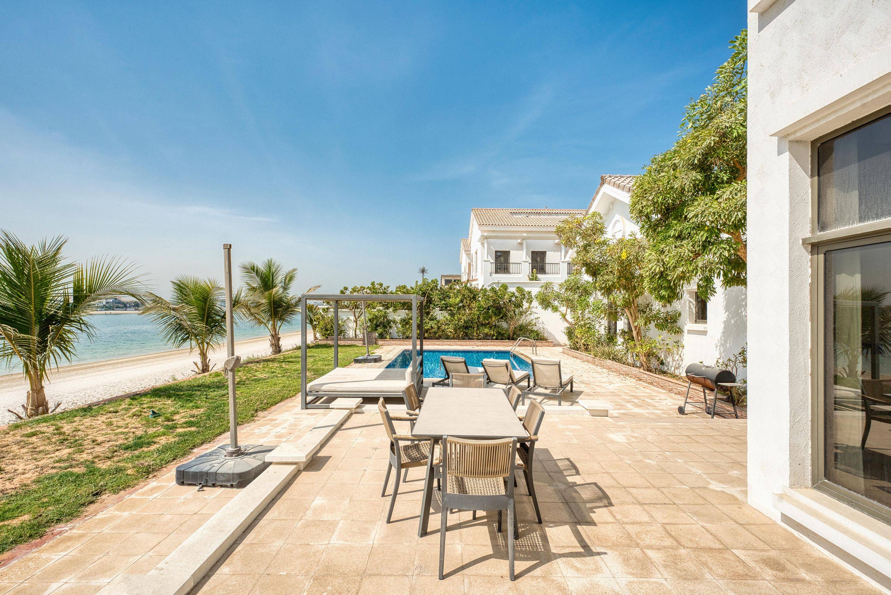 <p>This stunning 6-bedroom, 8-bathroom villa offers an impressive 7,000 sq. ft. of meticulously designed living space. Unwind in the elegant interiors or take in picturesque views of the sea from your private balcony.</p> <h3>Key Highlights:</h3> <ul> <li>Spacious 6 bedrooms and 8 lavish bathrooms</li> <li>Expansive 7,000 sq. ft. built-up area</li> <li>Plot 1245 sqft</li> <li>Fully furnished with modern decor</li> <li>Private swimming pool and garden for ultimate relaxation</li> <li>Beach access and BBQ area for unforgettable gatherings</li> <li>Central air conditioning and built-in wardrobes</li> <li>Dedicated maid's room and private garage</li> </ul> <h3>Nearby Facilities:</h3> <ul> <li>Nearest school: Sovereign International School – 5 km</li> <li>Nearest restaurant: Nobu – 2 km</li> <li>Nearest airport: Dubai International Airport – 30 km</li> </ul> <p>This villa offers a lifestyle of tranquility and luxury, perfect for families and investors alike. Enjoy fine living with unparalleled amenities and a beachfront lifestyle just a stone's throw away.</p> <p>Reference number VI39485</p>